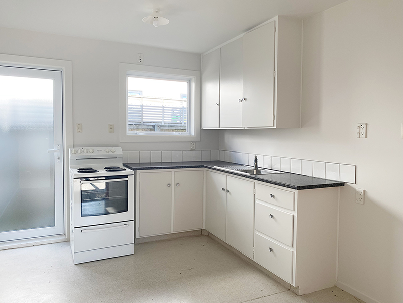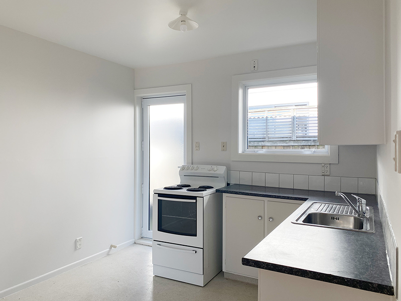 - Tidy kitchen with plenty of storage and room for dining table