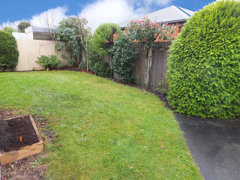 - Fenced, private yard with easy-care garden